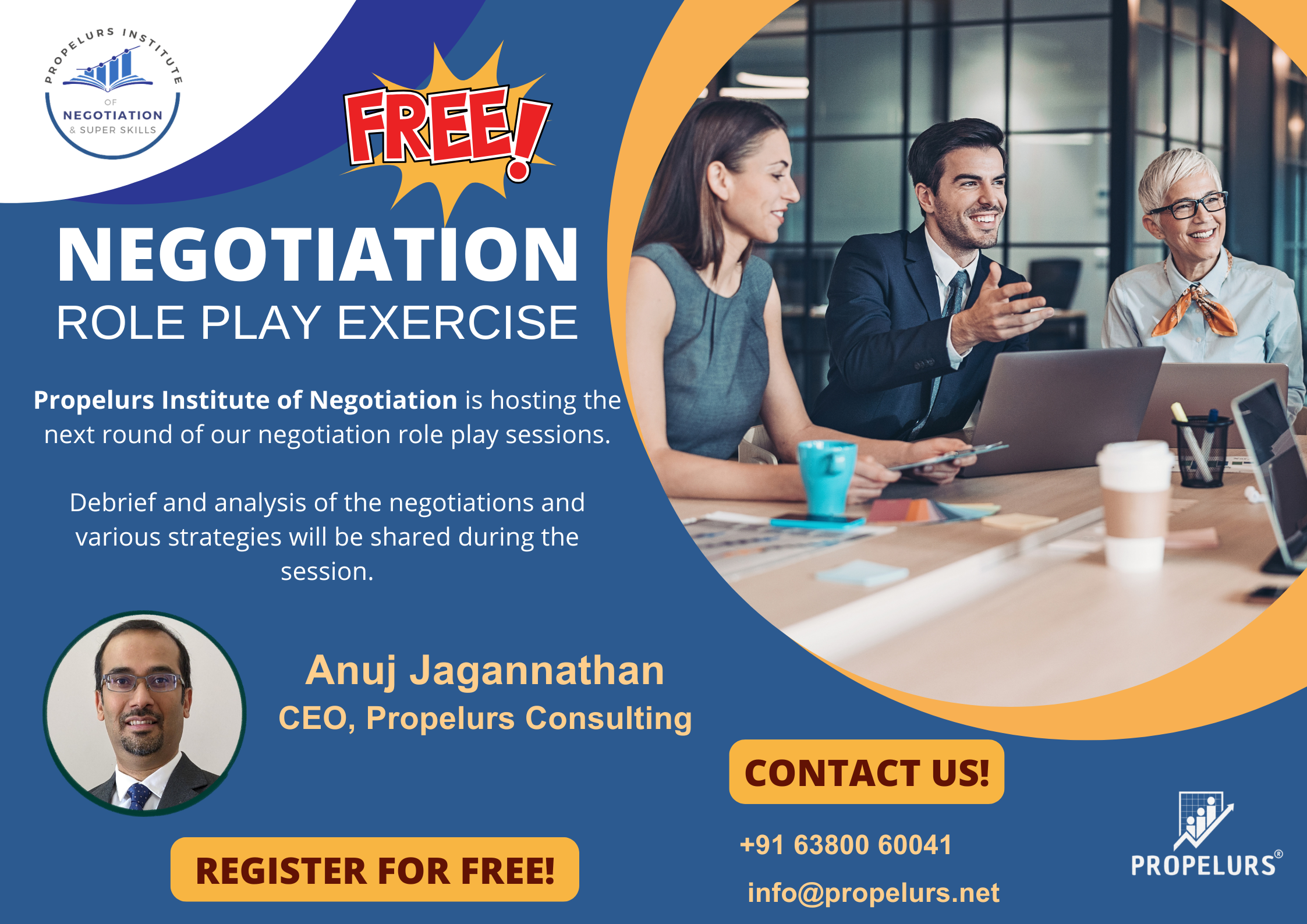 Participants will then engage in a structured role play scenario, simulating real-world negotiation situations created by Anuj Jagannathan. The game encourages quick thinking, adaptability, and strategic decision-making while interacting with others. The session is highly engaging, with active participation, followed by guided reflection and debrief to help participants understand their approach, strengths, and areas of improvement. By the end of the session, participants will gain practical insights into negotiation behavior, learn simple yet powerful techniques, and build confidence to handle conversations with greater impact.